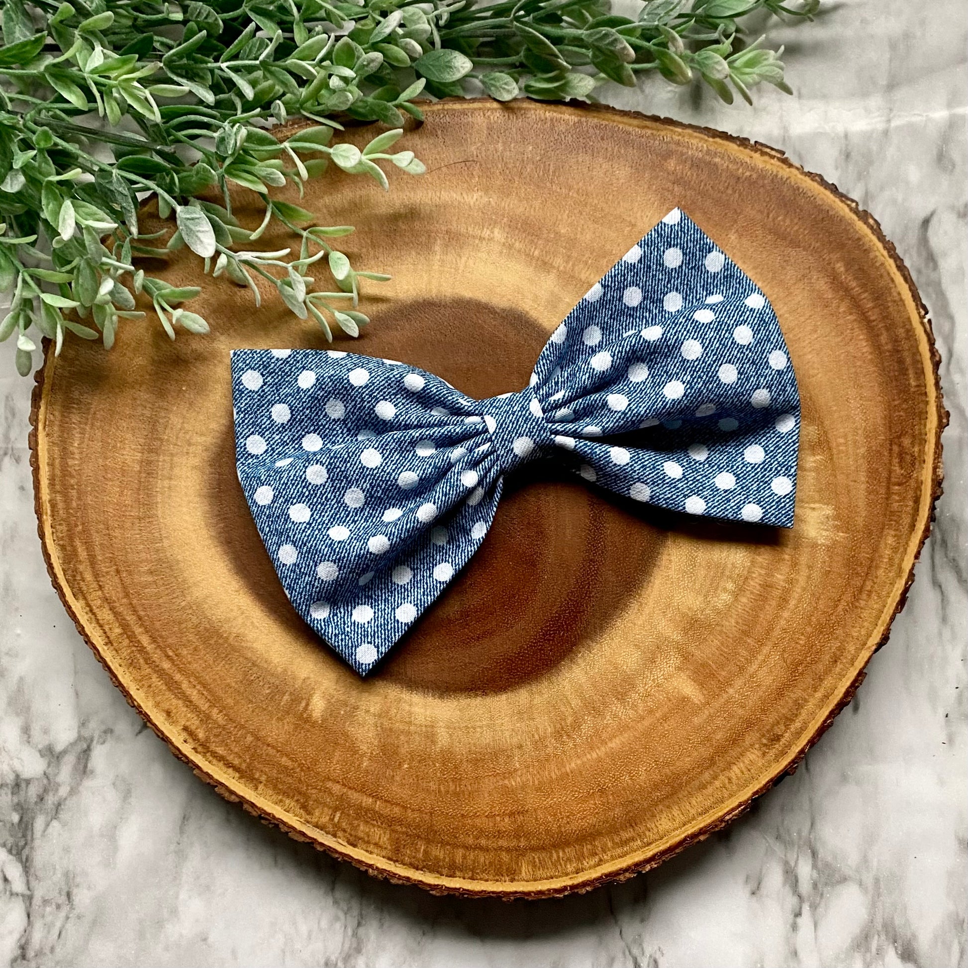 Denim Polka Dot Bowtie & Head Bow