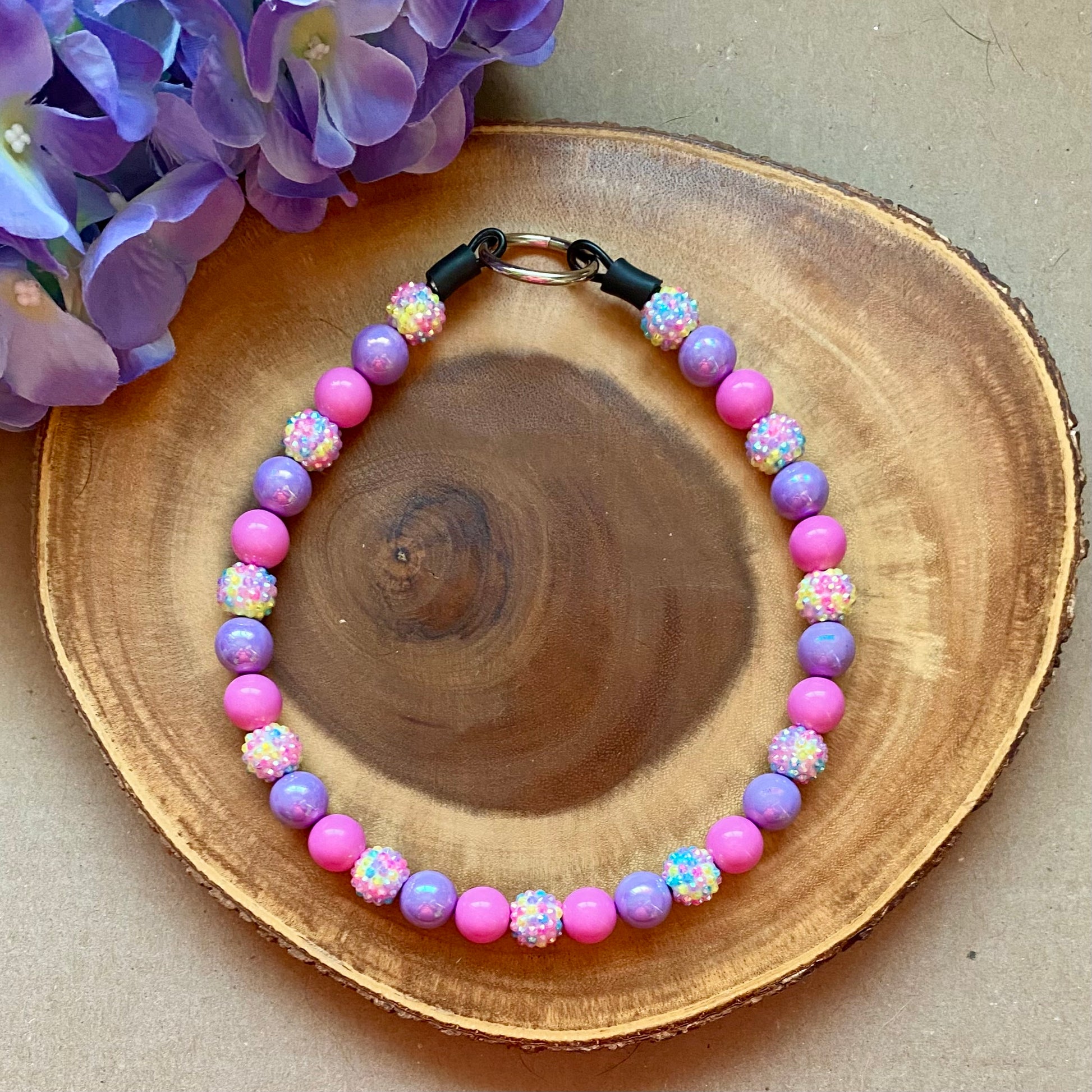 Elevate your pup’s style with our bubble gum-sized acrylic collars, custom-made for comfort and safety. Whether you opt for an o-ring or clasp, both are reinforced with aircraft-grade steel wire to ensure lasting durability.