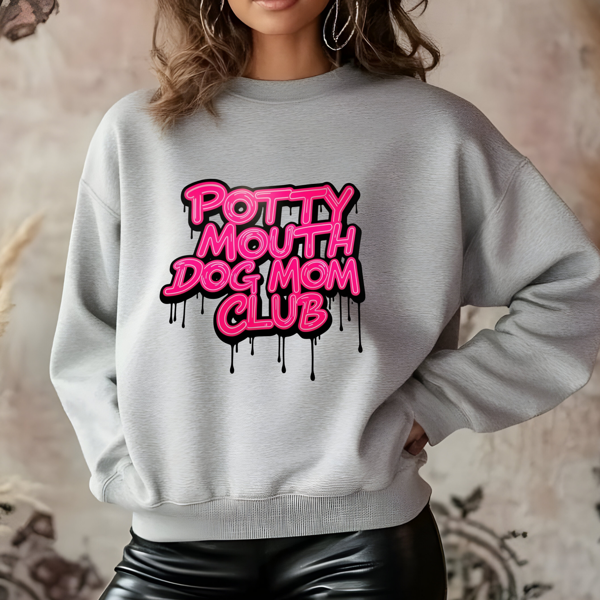 Neon Potty Mouth Dog Mom Club Crewneck
