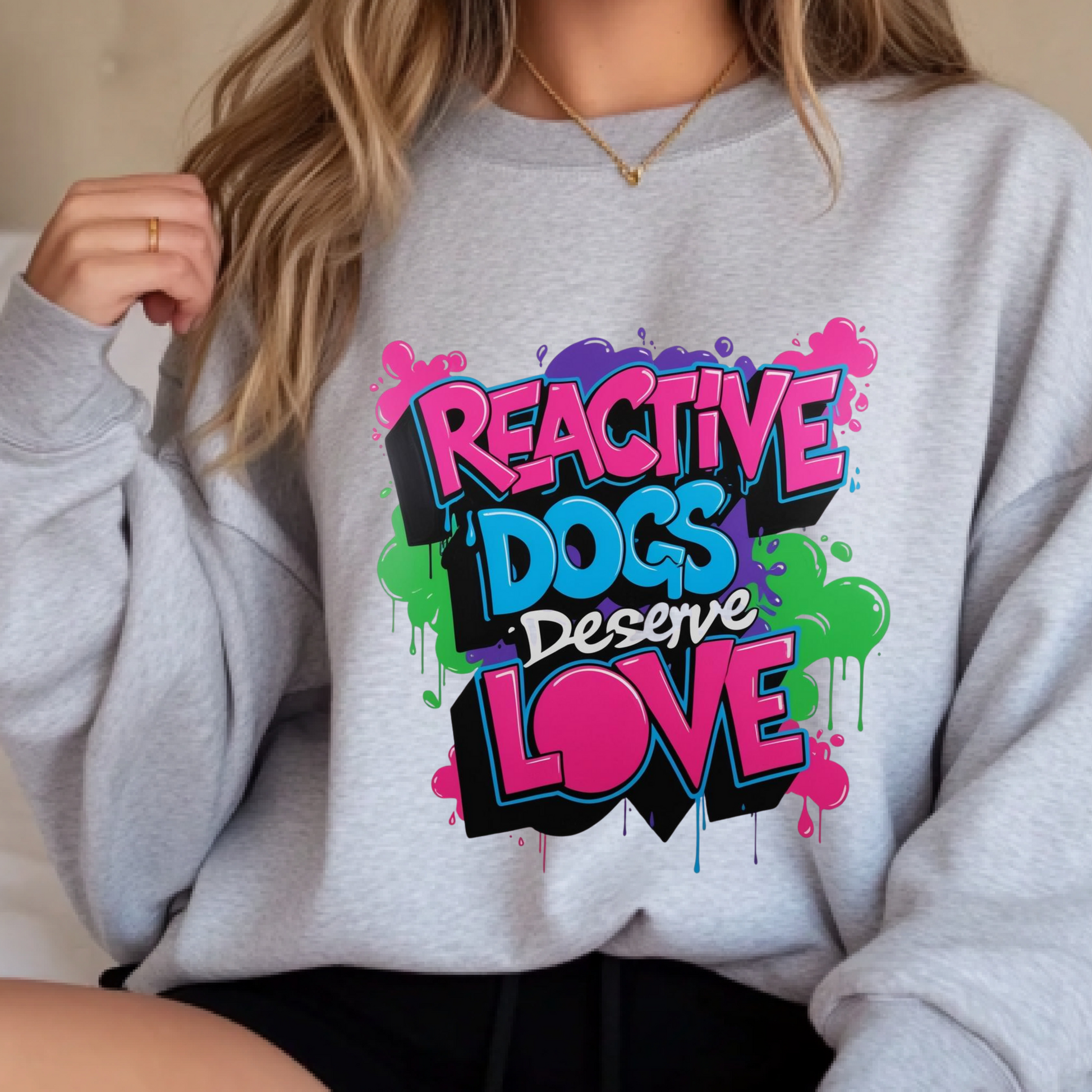Neon Reactive Dogs Deserve Love Crewneck