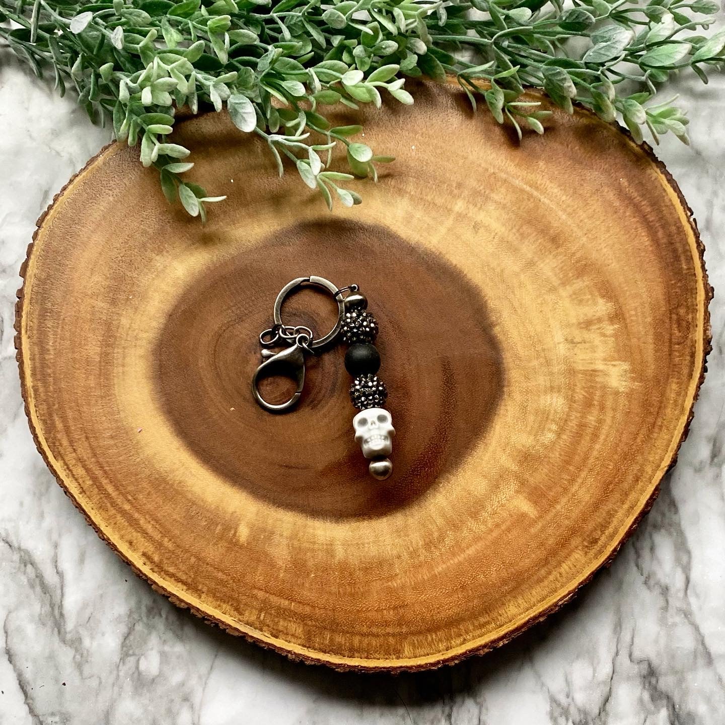 Sparkle Skull Beaded Keychain